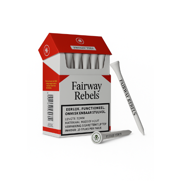 Smokin’ Tees zijn ontworpen voor golfers die weten wat ze willen: eenvoud, kwaliteit en karakter. Met een lengte van 70mm zijn deze houten tees ideaal voor lange slagen met de driver of fairway woods. Verpakt in een iconisch doosje dat doet denken aan een klassiek sigarettenpakje – compact, strak en net even anders.